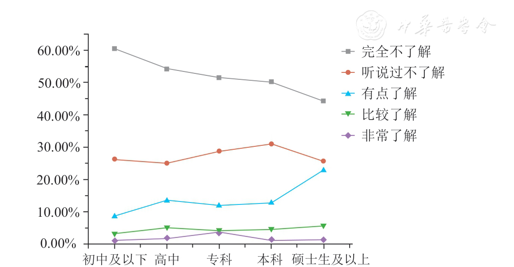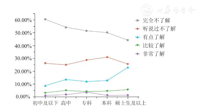 | 硕士生及以上 | 31(44.29) | 18(25.71) | 16(22.86) | 4(5.71) | 1(1.43) |